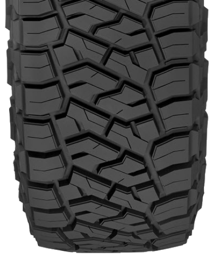 The Open Country R/T Trail rugged terrain tire delivers better off-road grip than a traditional all-terrain tire, most evident in the sand, mud, and deep snow. The extra-thick shoulder and sidewall lugs dig into deep and soft terrain. This thickness also provides impact and puncture resistance. With the off-road chops to perform in varying terrain, the Open Country R/T Trail is designed for light-truck and SUV owners who want more off-road capability than a traditional all-terrain, without the noise and harshness of a dedicated mud tire.