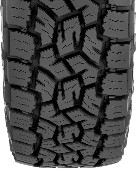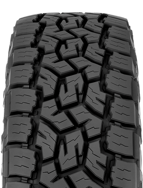 The Open Country A/T III all-terrain tire delivers gripping off-road traction with responsive and predictable on-road handling. With a strong focus on wet performance, durability, and treadwear life, and using Toyo’s proprietary T-mode tire development and modeling technologies, Toyo introduces advanced tread design, construction, and compounding. The Open Country A/T III provides a quiet ride with exceptional stability, instilling driving confidence no matter the terrain. Built tough, it offers peace of mind to safely get there and back home, regardless of terrain or weather. With a treadwear warranty of up to 65,000 miles, outdoor adventurers can rely on the Open Country A/T III for the long haul.