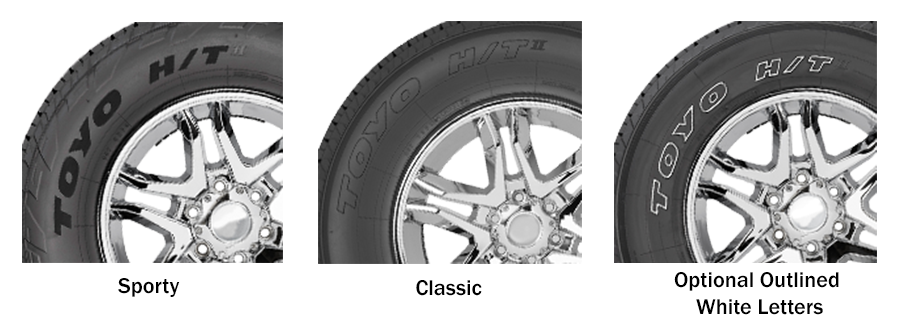 • The Open Country H/T II features a dual sidewall design that allows for customization—sporty on one side, classic on the other. Outlined white letters are also available.