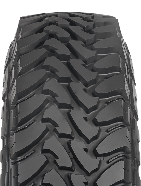 The Open Country SxS delivers the performance and design features of the race-winning Open Country M/T-R in a smaller package specifically designed for side-by-side vehicles. Its large diameter provides high ground clearance for tackling obstacles. Durable construction and advanced compounds developed through strenuous motorsports testing provide responsive off-road traction on rocky paths, muddy trails, and uneven surfaces.