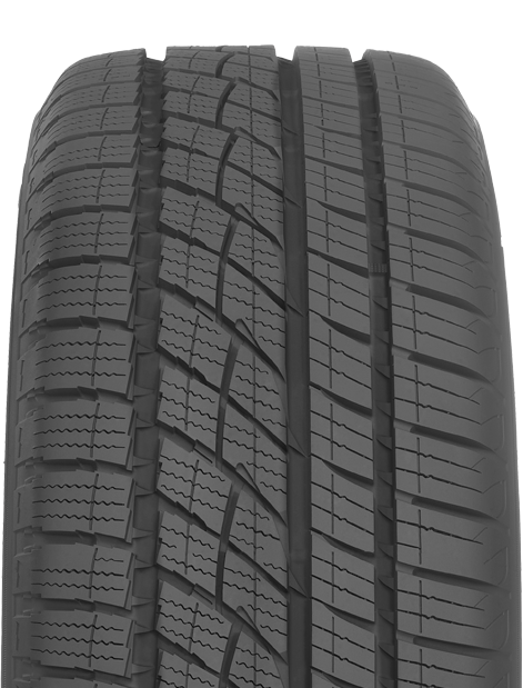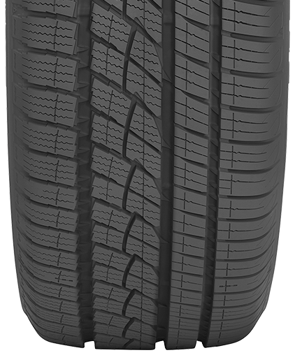 • Maintains wet and dry all-season traction through the balance-of-sipe density and interlocking multi-wave sipes on the outside tread.