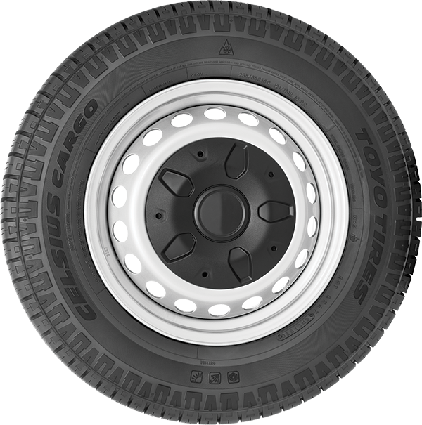 The Celsius Cargo is designed for commercial van and light truck owners needing year-round, all-weather reliability. It delivers top-tier performance and even wear at a great value with improved snow and ice performance over a typical all-season tire and longer tread life than a winter tire. With an outside tread designed for all-season performance, and an inside tread for winter traction, independent owners and small fleets enjoy more time on the job and less downtime switching tires. A durable sidewall provides extra protection against curb damage, and a sturdy casing provides exceptional handling and stability during frequent stops and starts.