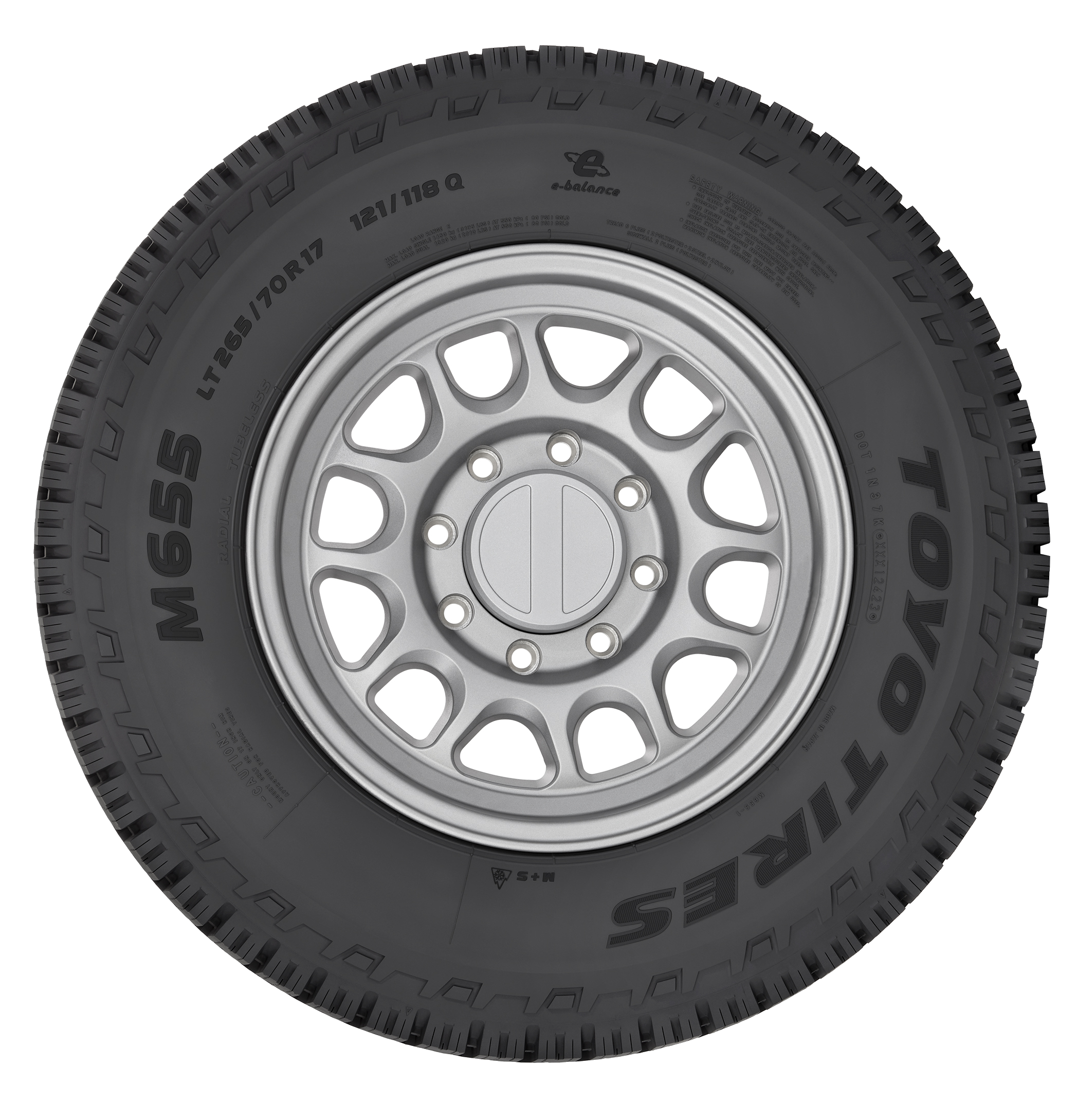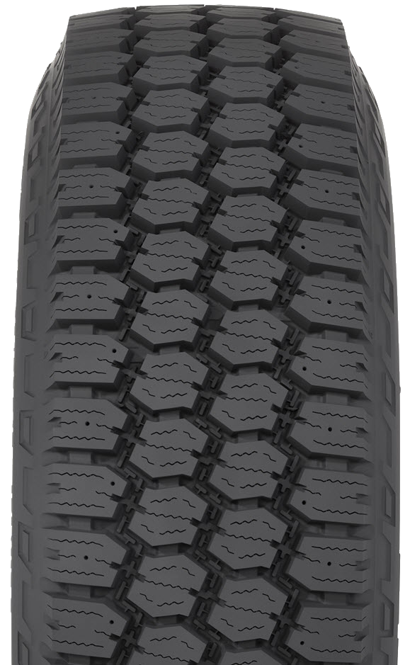 Built tough for severe duty, the M655 commercial grade light truck tire provides confident traction under heavy loads for mining, energy, agriculture, construction, and forestry use. It has a sturdy sidewall, a cut-and-chip resistant cap compound, and a heat-resistant base compound that withstands stresses under load on unimproved roads. A deep tread and flat crown radius reduce irregular wear, while the groove and notch design protect the casing from stone damage. Plus, it carries the Three-Peak Mountain Snowflake designation for traction in snow and ice.